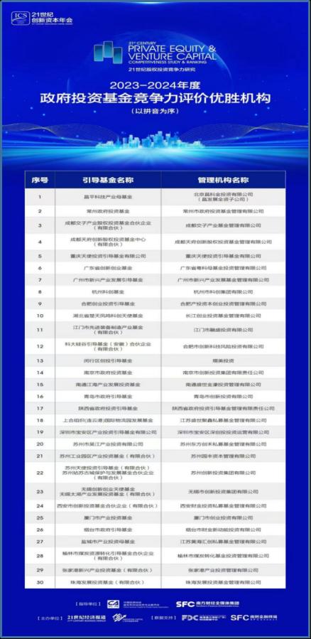 21世紀經(jīng)濟報道是中國最具影響力的財經(jīng)媒體之一,本次評選從政策目標、財務(wù)效益和管理水平等方面,客觀(guān)、公正的對各地政府投資基金在服務(wù)區域經(jīng)濟發(fā)展、推動(dòng)產(chǎn)生調整升級、提升區域創(chuàng )新創(chuàng )業(yè)競爭力等方面的價(jià)值與貢獻進(jìn)行評價(jià),榜單具有權威性、專(zhuān)業(yè)性,引導基金能夠上榜,體現了業(yè)界的認可。