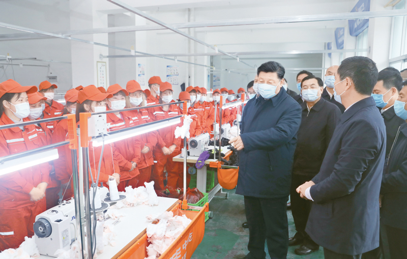 2020年4月20日至23日,中共中央總書(shū)記、國家主席、中央軍委主席習近平在陜西考察。這是4月21日,習近平在安康市平利縣老縣鎮錦屏社區考察社區毛絨玩具廠(chǎng),了解搬遷群眾就業(yè)情況。 新華社記者 鞠鵬/攝